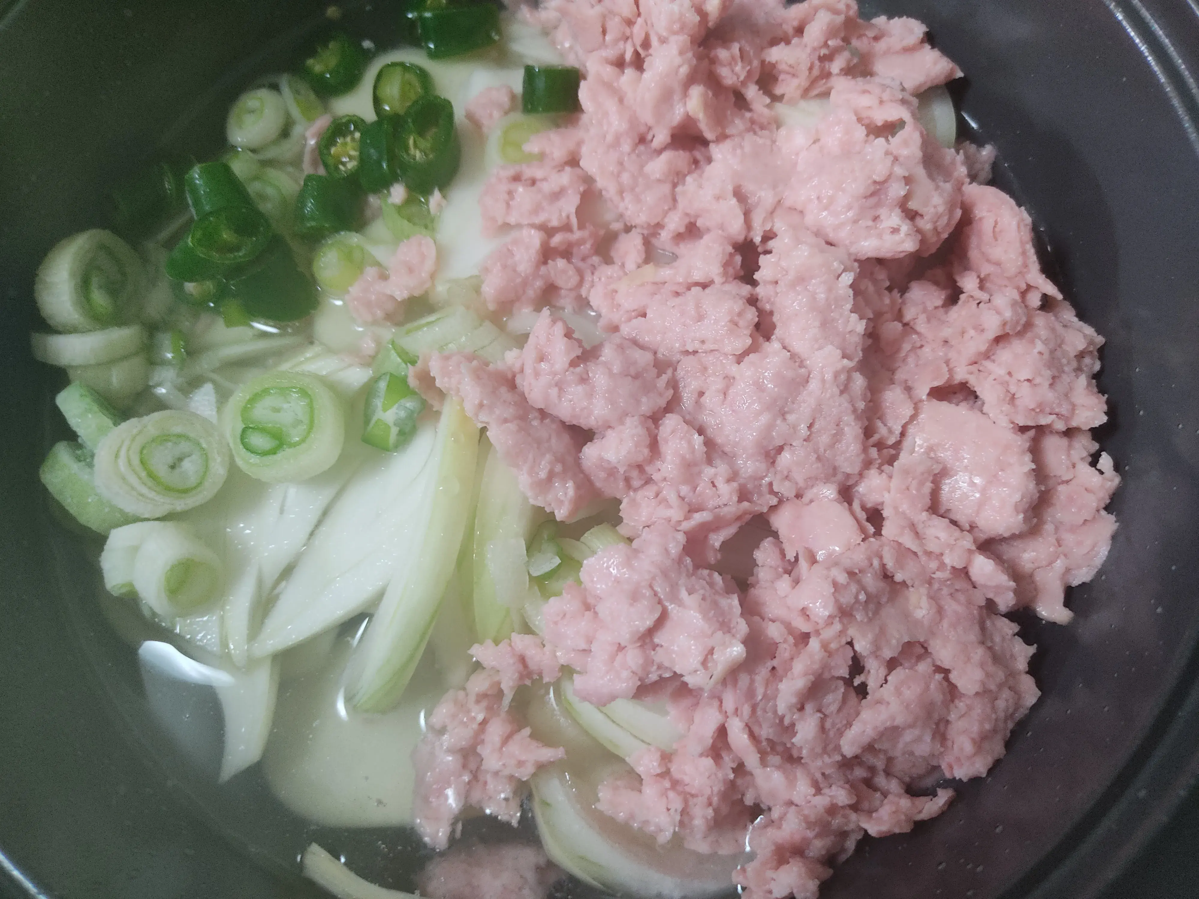 통조림 햄은 통째로 비닐봉지에 넣어서 으깨서 사용할 것이고, 청양고추는 매운 걸 싫어한다고 해도 조금은 넣어주는 것을 추천한다.